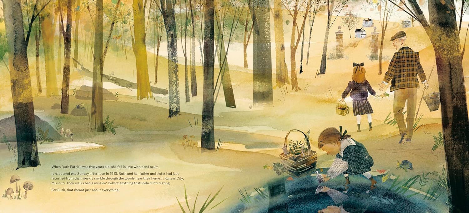 My agent at the time asked me to write the first few spreads. I had no trouble coming up with a catchy opening line: “When Ruth Patrick was five years old, she fell in love with pond scum.” The pages that followed about Patrick’s childhood practically wrote themselves.