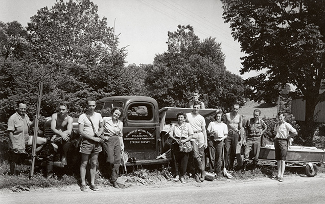 Dr. Ruth Patrick (fourth from left) and the team she assembled in 1948 to study the Conestoga River in Lancaster County, Pa. Photo credit: ANSP Archives coll. 457