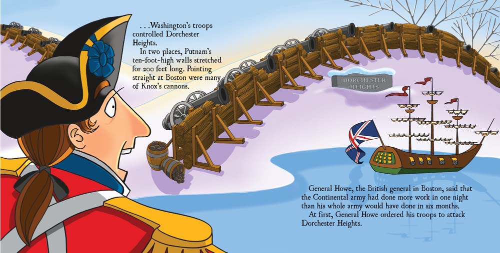 But I’ve always been fascinated with the second part of the Colonial strategy. They needed to bring the cannons to high ground—Dorchester Heights—and aim those cannons straight at the British.