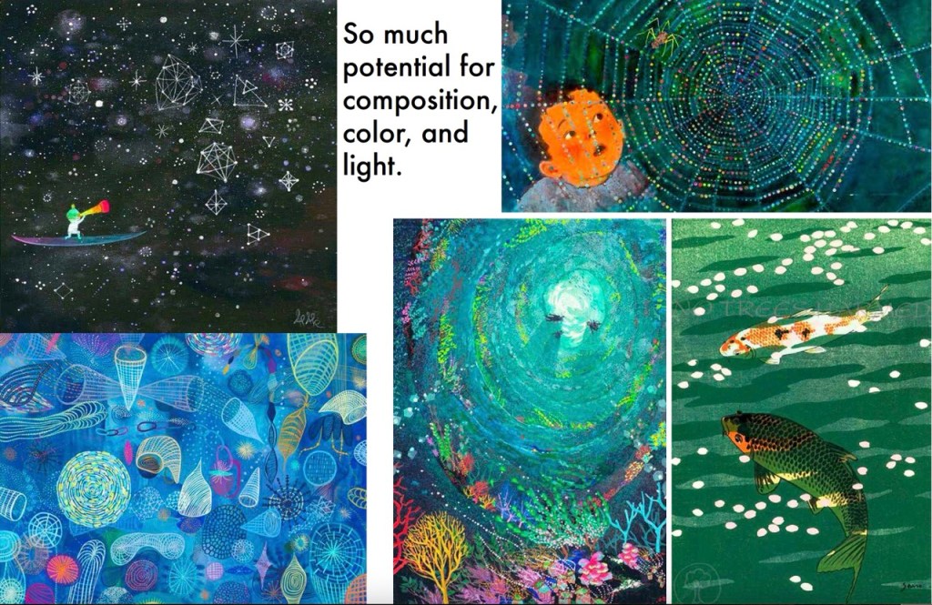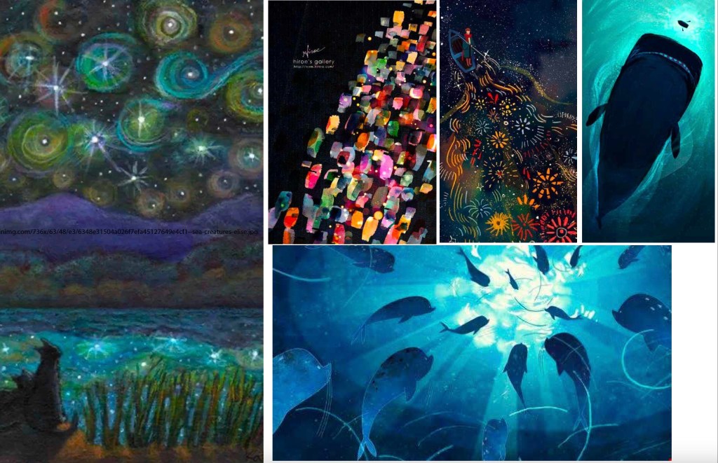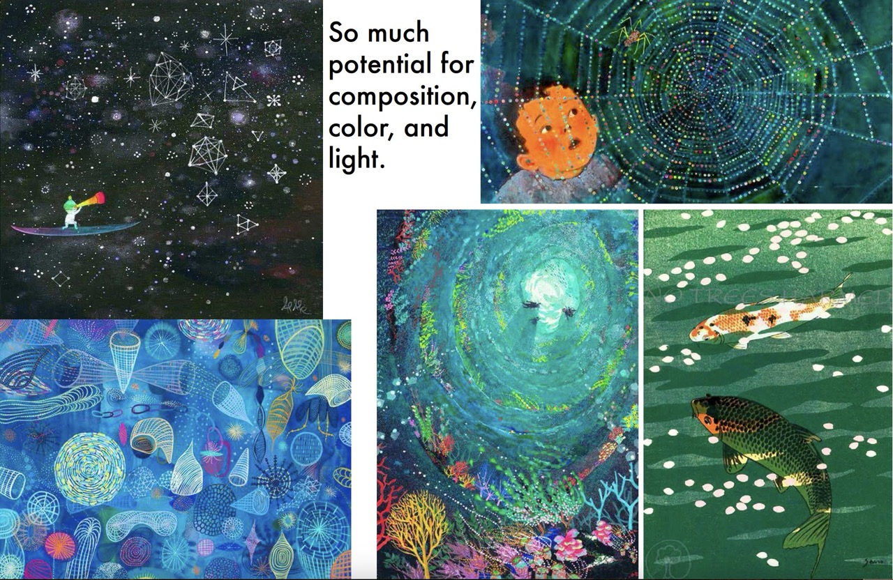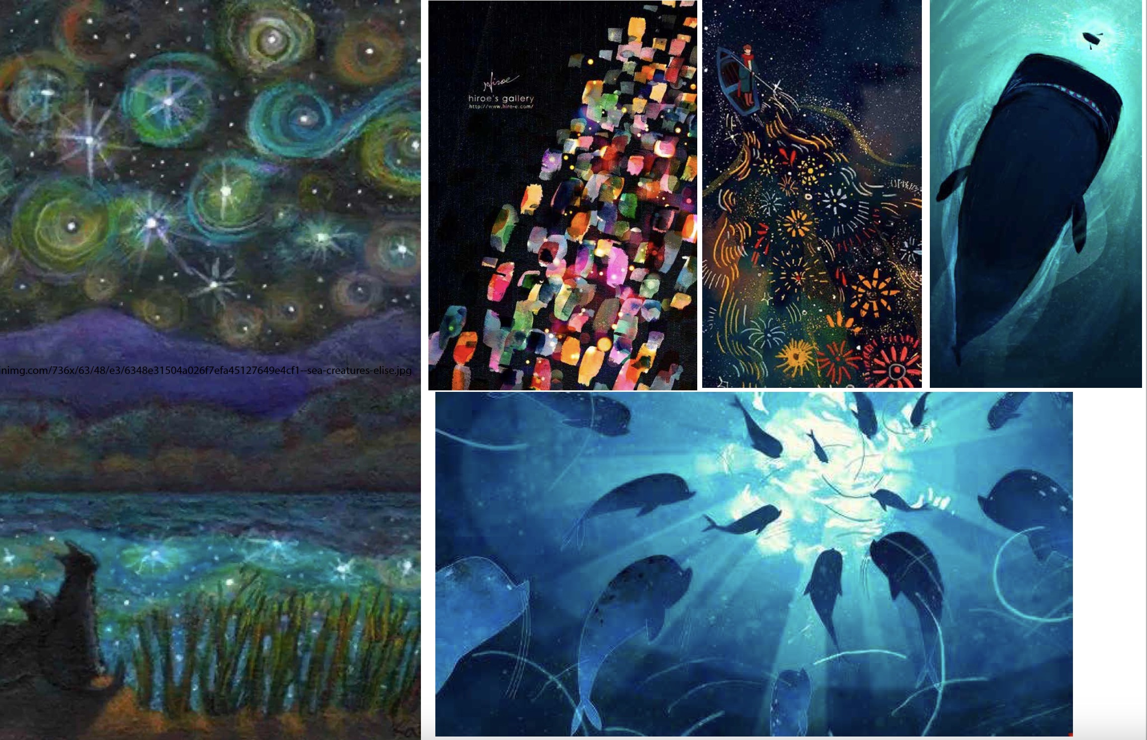 One of my critique partners, Katy Tanis, an author-illustrator, had already lived through many revision rounds of this story, and thought there were plenty of illustration options that could be pursued. So she pulled together an “inspiration board.”