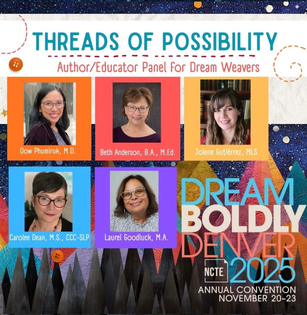 11/21 – 3:30-4:45 pm – Room 106: Threads of Possibility: Author/Educator Panel for Dream Weavers with Beth Anderson, Carolee Dean, Jolene Gutiérrez, Dow Phumiruk, and Laurel Goodluck.
